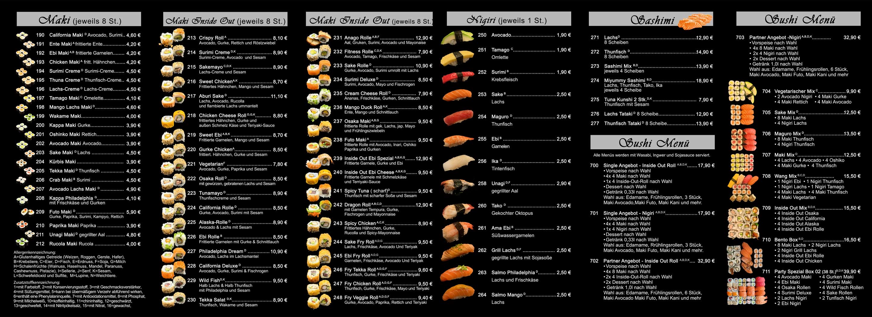 Maki · Inside-Out · Nigiri · Sashimi · Sushi-Menüs